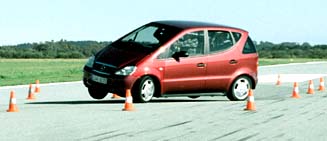Конечно, рано или поздно все машины "промахиваются". Но тогда всех насторожило то, что Mercedes начал "мазать" уж слишком рано по сравнению с другими автомобилями, а крены становились угрожающе большими. Казалось, еще чуть-чуть — и А-класс опрокинется. К тому же иногда автомобиль приподнимал в воздух сразу два колеса, а это было и впрямь серьезным симптомом... Взяли еще один Mercedes. Примерно та же картина. Резкий провал в занос, большие крены, переход в неконтролируемое скольжение.