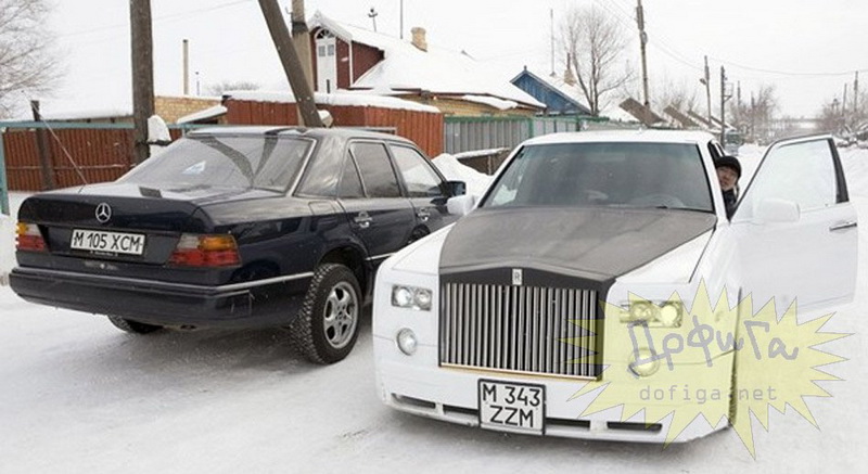 Один из автомобилей премиум-класса Rolls-Royce Phantom теперь украшает двор казахской деревни. Правда, это не оригинальный седан, а лишь его точная копия. Казахские любители автотюнинга превратили старенький Mercedes-Benz в один из самых дорогостоящих автомобилей мира всего за 3 000 долларов.