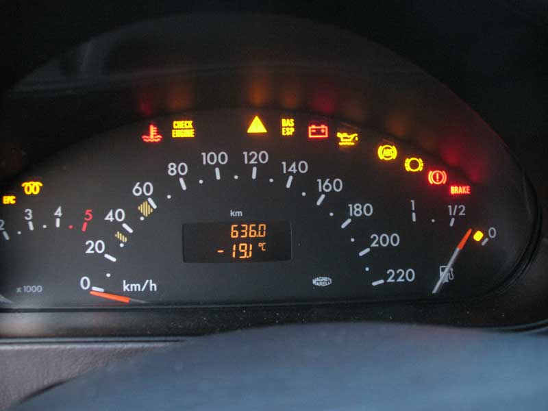 Неплохо было заранее изучить пиктограммы, которые должны загораться при повороте ключа и сравнить с тем, что вы видите по факту. Некоторые добрые продавцы могут тушить индикаторы, говорящие об неисправности авто и в таком состоянии отдавать вам машину. У меня например были потушены лампочки BAS/ESP и ABS - системы не работали. В аттаче можно найти, как должна выглядеть иллюминация на панели A170 CDI 2000г. выпуска. От модели к модели расположение лампочек может меняться. Еще два небольших замечания: a) на картинке нет лампочки SRS (обозначает тестирование систем безопастности авто) - не попала в кадр, так успела потухнуть на момент съемки б) лампочка CHECK ENGINE вообще говоря является необязательной и может отсутствовать (т.е. это не причина "наезжать" на продавца). 2) При покупке дизельной версии Ашки дабы исключить попадалово, отлично описанное вот в этой теме Покупка Mercedes CDI или как не покусать локти! советую запастись зеркальцем и внимательно исследовать две правые форсунки на предмет закоксованности. Крайняя правая вообще видна практически невооруженным глазом, ну а в зеркальце можно будет рассмотреть вторую справа. После покупки в обязательном порядке помимо диагностики снимать впускной коллектор и смотреть оставшиеся форсунки (если машина покупается надолго и не хочется иметь проблем в будущем). Повторюсь, что сие действо относиться только к дизельной версии W168Поворачивайте ключ в замке зажигания, смотрите на дисплей на приборной панели, через некоторое время должны загореться пиктограммы "часики" и "лейка".