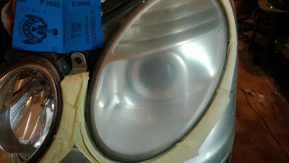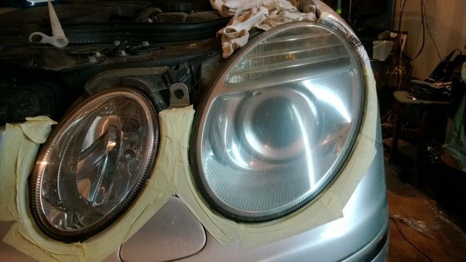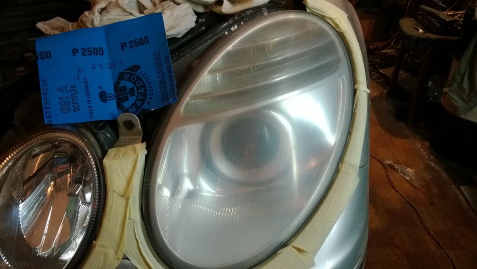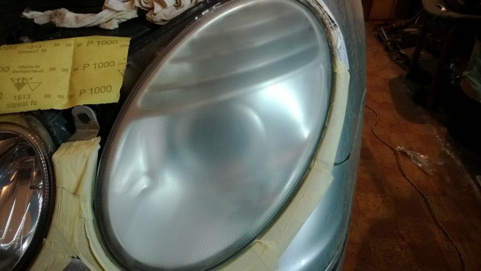 Для начала потренировался на дальнем свете, а потом принялся за ближний. На полировке ближней фары и готовил фотоотчет.