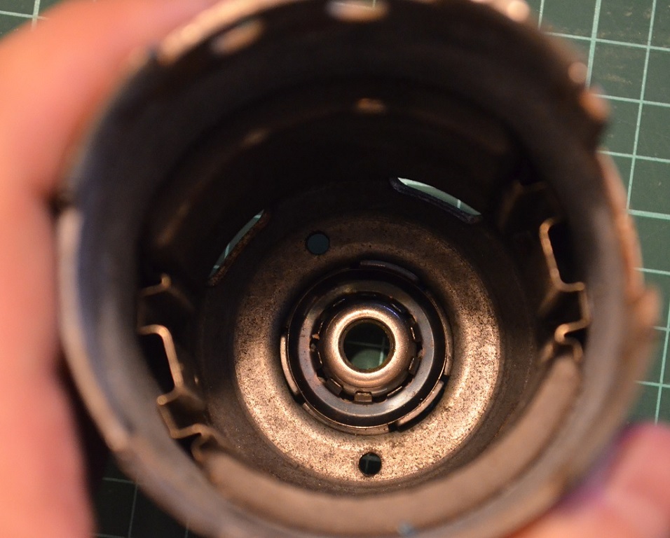 В местах, где работают подшипники скольжения вал имеет небольшой износ и подшипник в этом месте легко перемещается по оси ротора, но ближе к концам вала он имеет утолщение. Это вызвано меньшим износом и самое главное скопившейся грязью, вместе со старой смазкой. Поэтому, когда вы начнете разбирать моторчик может получиться так, что втулки подшипников заклинит на валу и они выскочат из своих посадочных мест в корпусе и останутся на валу ротора.