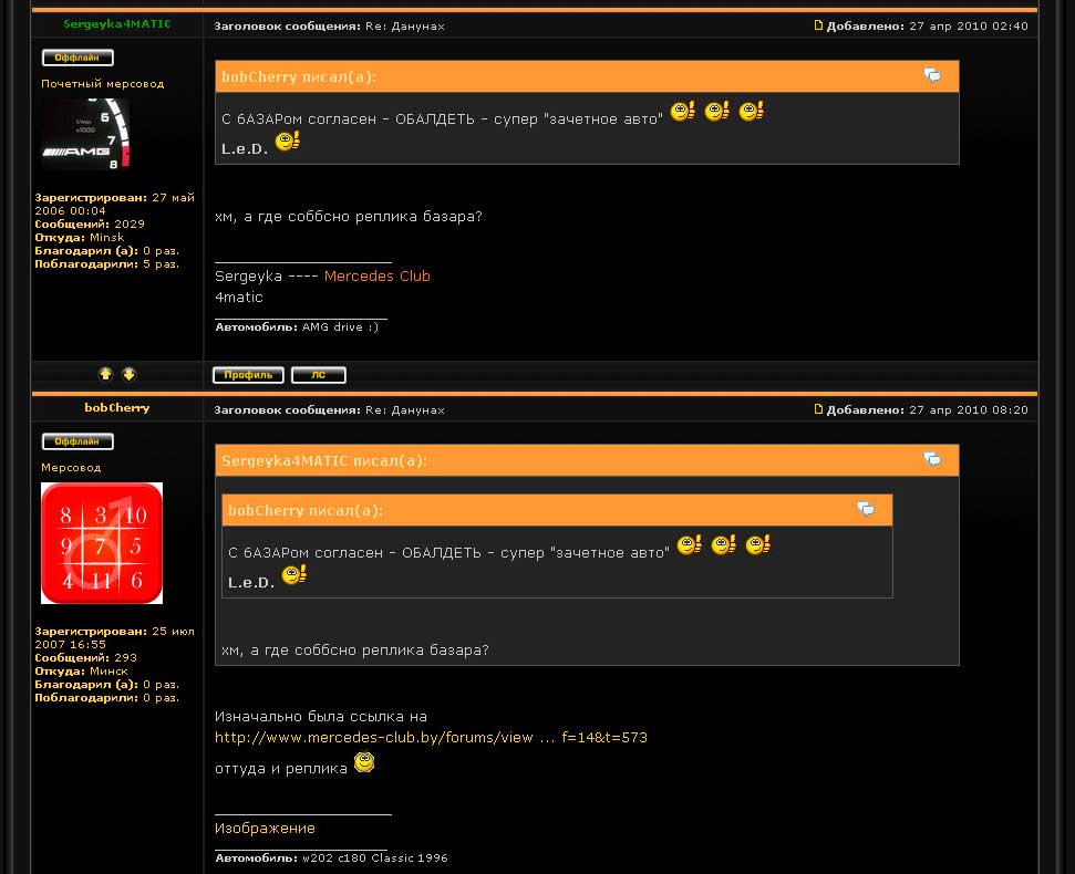 Сам бы ни за что об этом не узнал, если бы друзья не подсказали. предыстория такова: "ЛЕД типо взял ссылку де базар выложил крутецкий мерс....и выложил ссылочку на мбклабе...мол смотрите какой крутой....через некоторое время ссылочка сыбалась тайным образом и осталось только фотка......