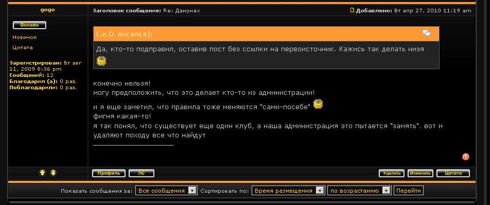 PS. Если провесит пару часов - можно "димке-фалену" указать на явное нарушение Правил ихнего форума ихним человеком!