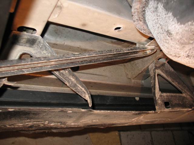 Стас, на картинке ПРАВЫЙ пластмассовый порог, фотка снизу. Средняя защита днища снята. Порог стоит на двух трехугольниках, типа упорах.