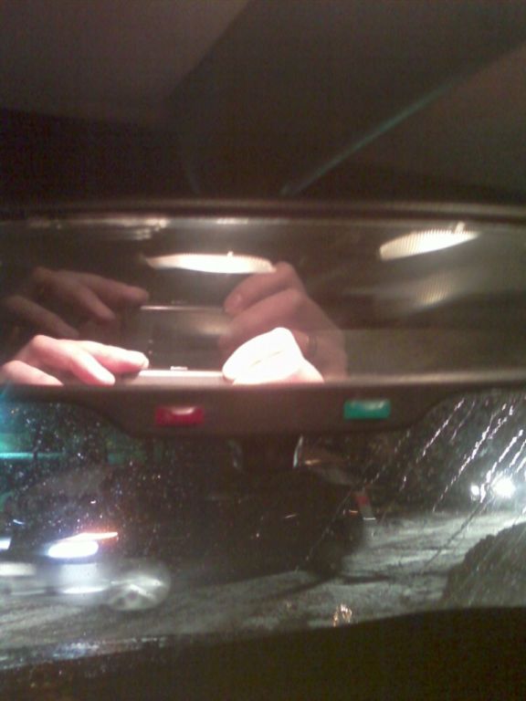 На зеркале зеркале заднего вида есть четыре лампочки (не наклееные, а встроенные), две красные и две зеленые. Две спереди и две с обратной стороны.