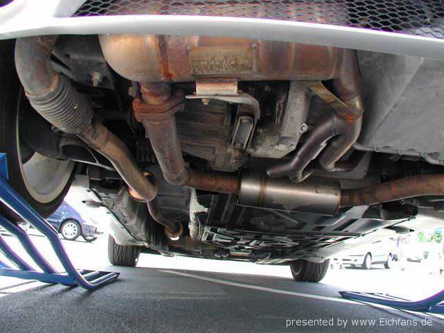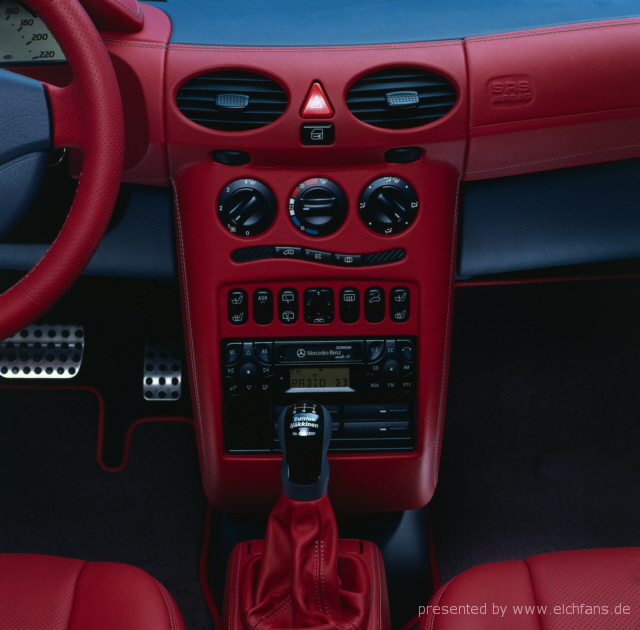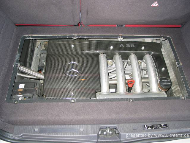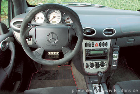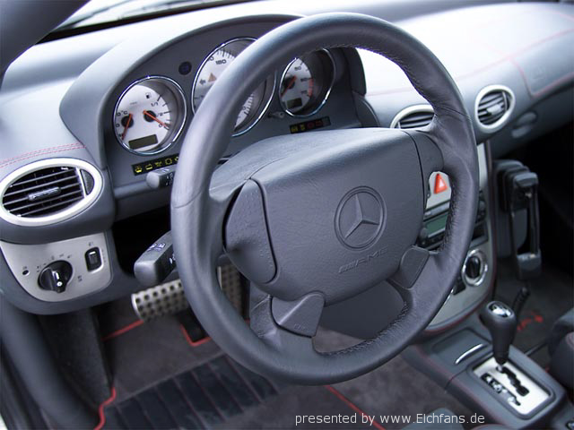 Итак собственно о нем: двигатель - продольно размещенная V-образная 3,2-литровая “шестерка”, с приводным компрессором с интеркулером (мотор, который AMG ставит на машины C-класса и SLK), мощность - 345 л.с., максимальный крутящий момент - 450 Нм, 5 АКПП, шины - 225/45ZR 17, полная снаряженная масса - 1665 кг, 0-100 км/ч - 5,7 с, максимальная скорость - не установлена. Поскольку двигатель раположен продольно, а передний мост взят с С-класса, то салон стал на 7 см короче. Так же и карданный вал был специально изготоблен для этого уникума.