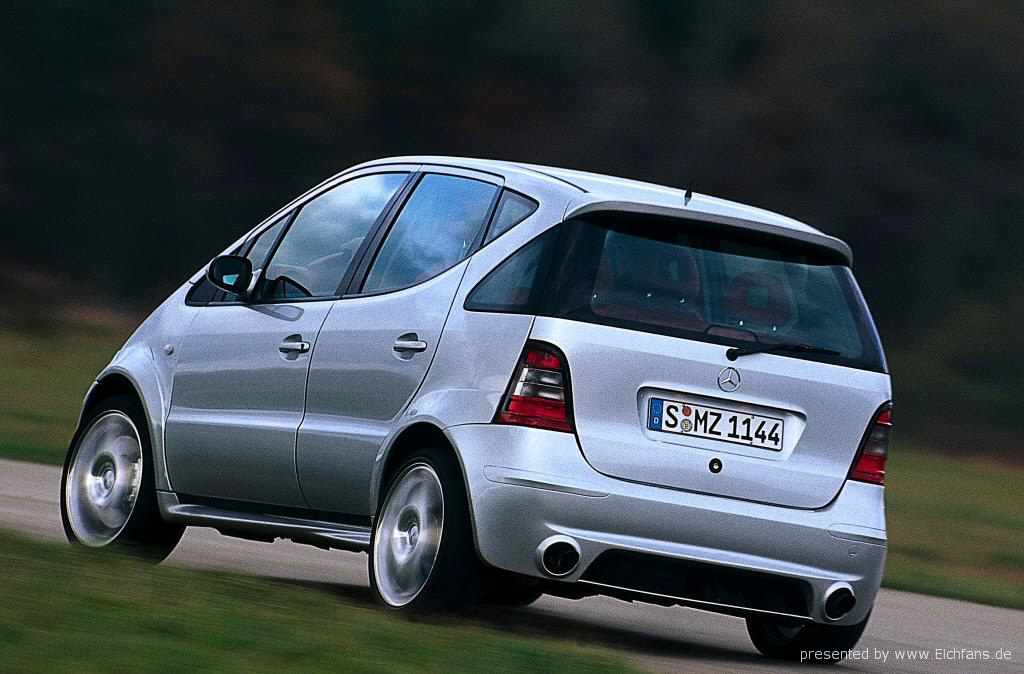 В том же месяце впервые была представлена новая опция для W168 - "AMG Optik-Pakets" . В мае 1999 года поступили в продажу автомобили A 190 (168.032). А уже через 2 месяца была выпущена серия A 190 AMG Optik-Pakets (с PTS 168 885 2225 по PTS 168 885 2325). В сентябре 1999 года были запущены в серию... 4-х местные А-шки. Что за зверь? Вместо заднего "дивана" устанавливаются 2 раздельных кресла. В октябре 1999 года начали выпускаться автомобили с пакетом опций, получившего название "Classic Spirit ". А в апреле 2000 года автомобили с пакетом опций "Classic Fun". В мае 2001 года был проведен фэйслифт модели W168 и начат выпуск автомобилей в удлиненной версии, получившей окончание "Lang". В январе 2002 г. появились в продаже серийные автомобили топовой версии А-класса - A210 Evolution (мощность двигателя 140 л/с). В марте 2002 начали выпускаться автомобили с пакетом опций, получившего название "Classic Style ". В сентябре 2003 года был выпущен миллионный автомобиль А-класса W168 и поступили в продажу автомобили с пакетом опций "Picadilly". Выпуск автомобилей W168 был закончен в апеле 2004 года и был представлен новый автомобиль получивший обозначение W169, серийный выпуск которого начался в октябре 2004 года. Но это уже другая история.