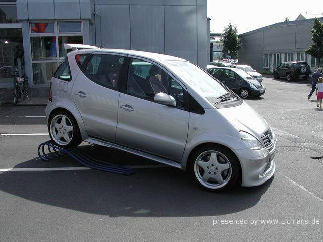 С этого момента в выпусках CNN «везучий» швед мало уступал в популярности Монике Левински. Уже 11.11.1997 г. концерн объявил о временном прекращении продаж А-класса и отзыве 2500 уже распроданных машин для технической доработки. На самом деле покупатели в итоге оказались в выигрыше. Поскольку причины «неустойчивого» поведения машины на тестах крылись в непросчитанных «на все случаи жизни» параметрах подвески и в неверном подборе шин. Да и центр тяжести А-класса из-за «сэндвичевой» конструкции пола был заметно выше, чем у одноклассников. (К слову – ни один из проданных автомобилей «первой серии» Mercedes А-класса не перевернулся.) «Работа над ошибками» не потребовала от инженеров и менеджеров компании много времени. Прежде всего на всех версиях А-класса стали устанавливать более жесткие и короткие пружины от спортивной версии Avantgard и низкопрофильные шины размерности 195/50R15 – вместо 175/65R15. Таким образом центр подрессоренных масс автомобиля опустился, a клиренс уменьшился – спереди на 22 мм, сзади – на 42 мм. Был использован более жесткий передний стабилизатор поперечной устойчивости. Колею задних колес увеличили на 10 мм. Кроме того, на А-классе стали серийно (и бесплатно) устанавливать ESP – электронную систему стабилизации, которая раньше являлась опцией стоимостью $1300. Таким образом, А-класс стал первым в мире автомобилем малого класса, в стандартное оснащение которого входит столь мощный компьютеризированный комплекс. (До этого ESP была привилегией только самых дорогих версий Mercedes: S-класса, полноприводных E-4matic, внедорожников M-класса и заднеприводных C- и Е-класса в исполнении AMG.)