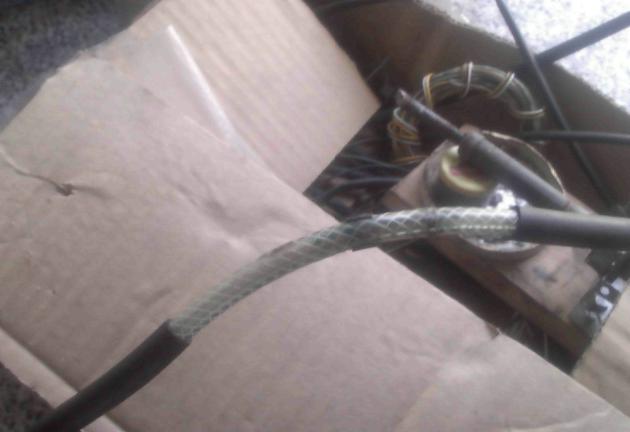 Склеив обе части шланга, сдвинул оплетку-бронь до места склейки и уплотнил все опять-же клеем и изоляционной лентой. Получилась равномерная оплетка….