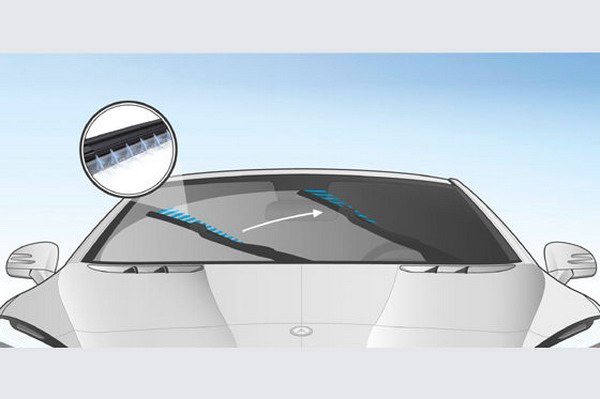 В новой системе «дворников» вода для омывания стекла распыляется не из форсунок, расположенных на капоте автомобиля, а непосредственно из самих стеклоочистителей, куда она попадает по шлангу, интегрированному в поводок. Кроме того, вода будет подаваться по направлению движения стеклоочистителя, что обеспечит быстрое и качественное мытьё. Новинка обладает определённым интеллектом. Летом стёкла будут омываться небольшим количеством воды, которое будет регулироваться в зависимости от дорожных условий. Если включен режим «Без крыши», то напор воды уменьшится, чтобы не обеспечить пассажирам непроизвольный душ. Зимой «дворникам» воды потребуется больше, и она будет подогреваться до необходимой температуры, которая зависит от температуры воздуха за «бортом».