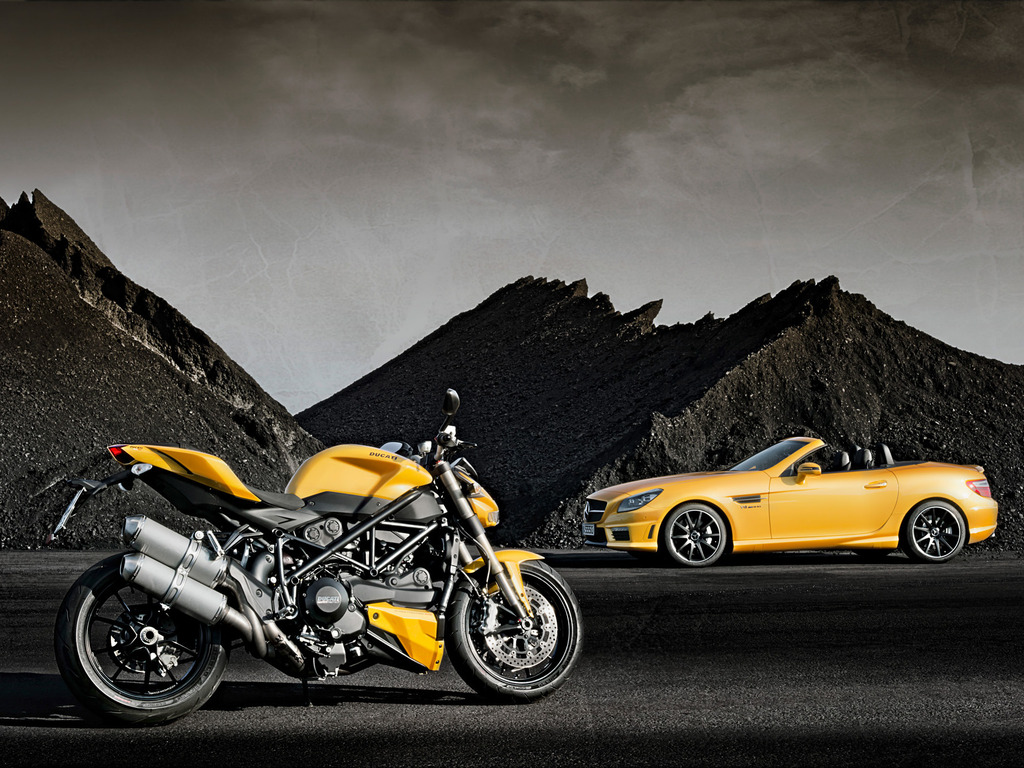Компания Mercedes-Benz показала на автомобильной выставке, которая проходила в Болонье, свой единственный и неповторимый родстер SLK 55 AMG ярко-жёлтого цвета. Эта поистине уникальная модель автомобиля была создана в честь своей первой годовщины сотрудничества автомобильного концерна Mercedes-Benz со всемирно известной итальянской компанией Ducati, которая является производителей высококачественной современной мототехники.