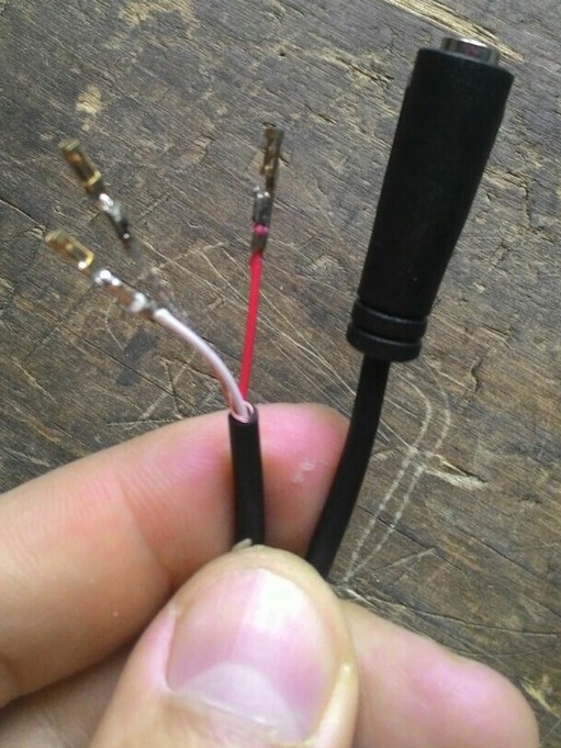 Спасибо, разобрался сам. Кабеля я конечно такого не нашел, на рынке таких фишек нет, на разборке тоже. Купил обычный провод, разрезал его и подсоединил три контакта без корпуса. Вывел гнездо в пепельницу. Все отлично играет.