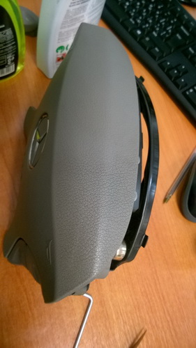 Ставить такой руль на место с грязной подушкой AIRBAG желание не было, чумазую подушку при помощи химии и зубной щетки отмыл на офисе за 15 минул. И уже потом все вместе, чистенькое, было поставлено на свое родное место.