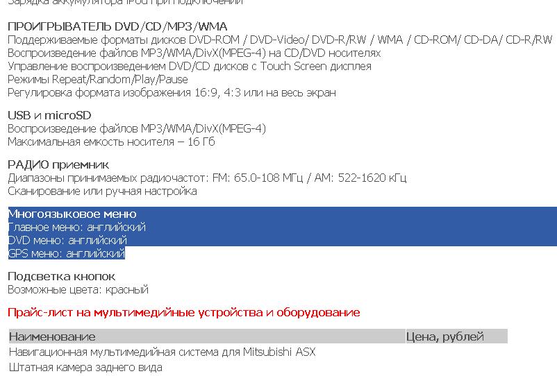 На официальном сайте mitsubishi расписаны характеристики доп. опции "Навигационная мультимедийная система для MITSUBISHI ASX":