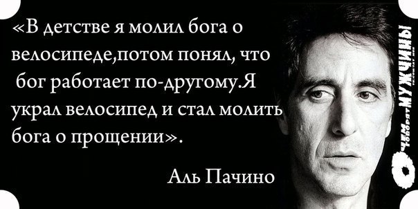 Правда жизни состоит в том, что если в детстве у тебя не было велосипеда, а сейчас у тебя Bentley - это значит, что... в детстве у тебя не было велосипеда.
