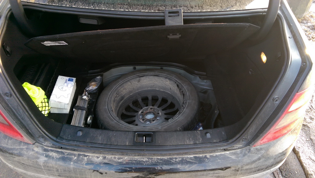 фото: Зима у меня 205/65 R16, лето 225/45 R17.Der Meister писал(а):у меня на w204 2007 седан ниша довольно большая, никакой докатки от прошлого хозяина не перекочевало, зато есть комплект летней резины на 17х дисках 225/45, вот сейчас там в нише эта дура здоровая и лежит в качестве запаски, в принципе ничего так, не считая того, что дно багажника прилегает неплотно, видимо после зимы зимняя R16 что чуть поуже туда войдет без проблем хотя тоже проверю)))) (фото выложу чуть позж) Но вот как-то меня такой вариант не очень устраивает, тяжелое это колесо и здоровое + не крепится никак. Подскажите, что там в оригинале если б при покупке была выбрана такая опция лежать должно и какого размера? Если докатка то какая и если полный размер то какой? Это все крепится плотно неким образом? Хочется помимо прочего еще и закрепить как-то там эту запаску, сейчас это не представляется возможным. Что посоветуете поискать?