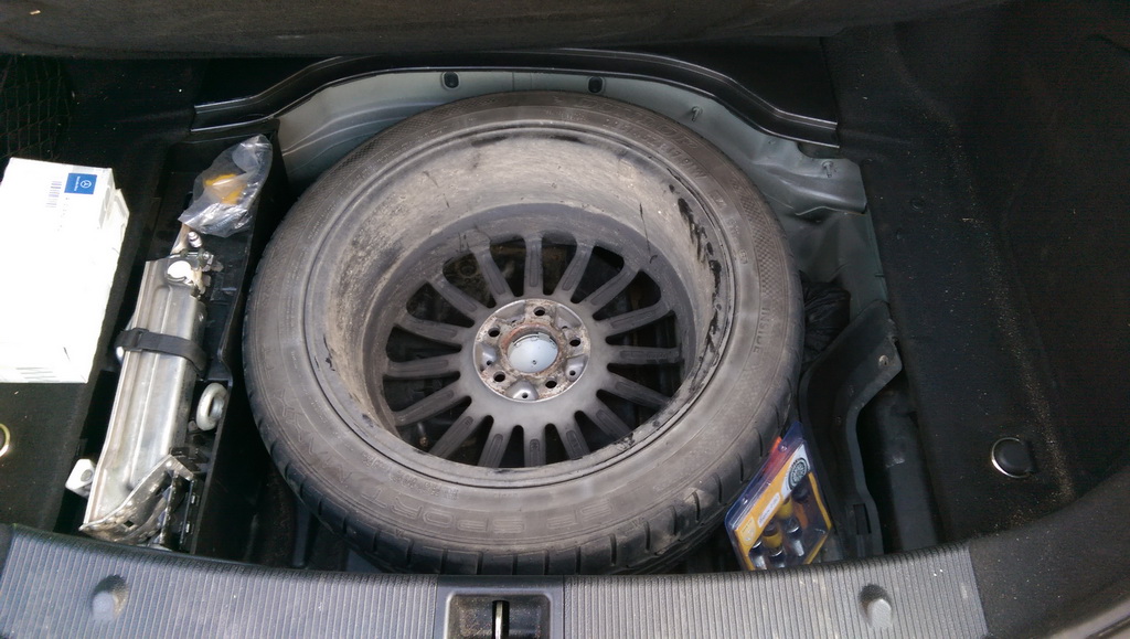 На фото одно из летних лежит сейчас в качестве запаски, тяжелое падла, да и дно багажника лежит неровно сейчас, когда перекину на лето колеса зимний возможно ляжет весь, но опять-таки не совсем удобно. Что бы вы посоветовали туда положить с точки зрения размера (общего и вообще)/веса/удобства, а также крепления в самой нише? Какая-нибудь облегченная запаска или докатка?