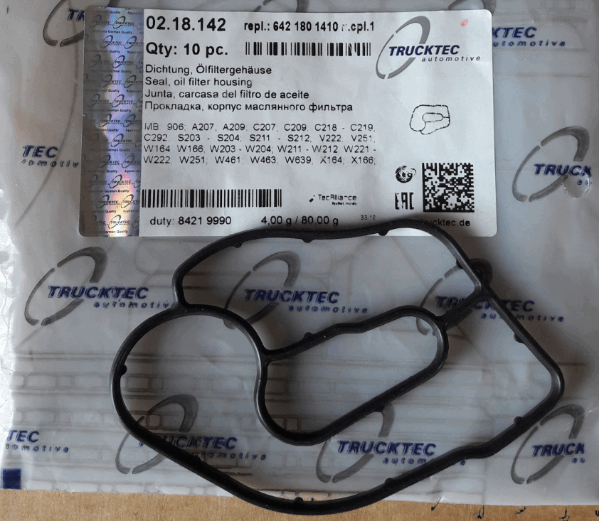 Возвращаюсь к прошлой теме.Вместо прокладки у меня стоит герметик.До сих пор никаких проблем,течи нет.Сейчас появилась прокладка и купил,стоимость 9 евро.Выпу кает фирма Trucktec automotiwe 02.18.142.Может кому-нибудь понадобится.